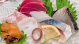 さらに、いろどりが見事な9皿の料理も登場、貝、エビ、お刺身など。