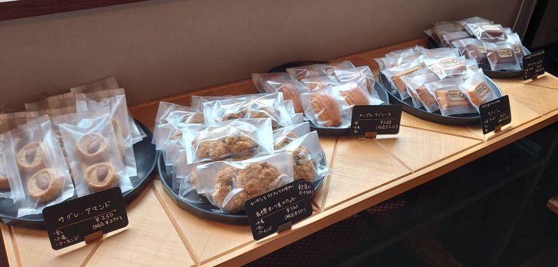 「写真を撮っても良いですか?」と尋ねると「裏にも焼き菓子置いてありますよ」と好対応。