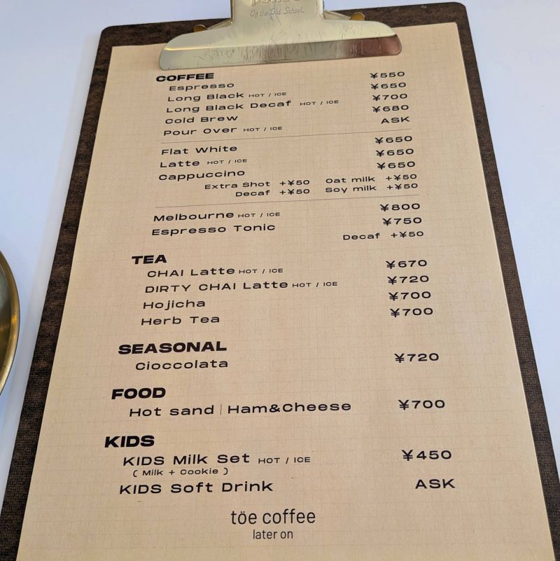 | 店名 | toe coffee later on |
