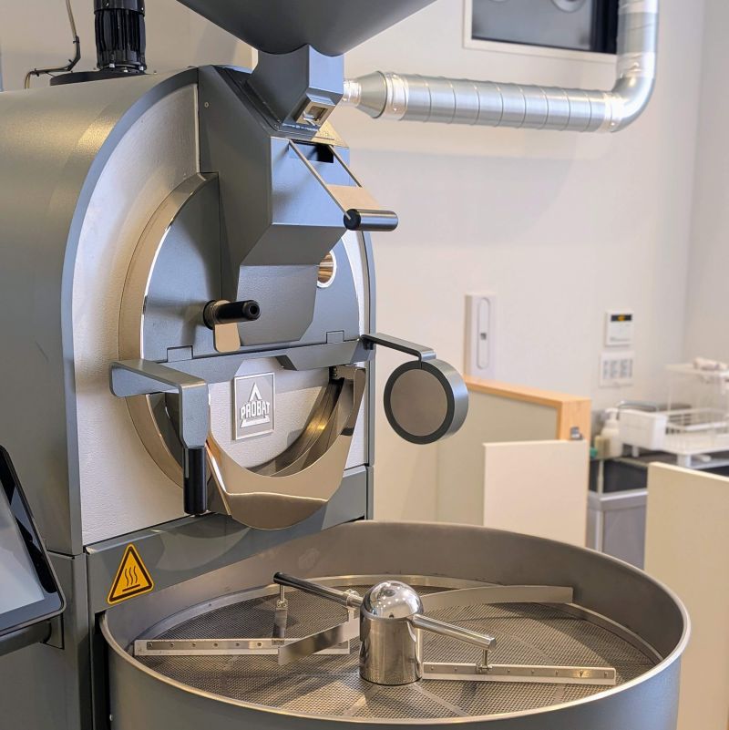 私は奥のテーブルの一角に居を得て、焙煎機の隣でコーヒーを待ちました。
