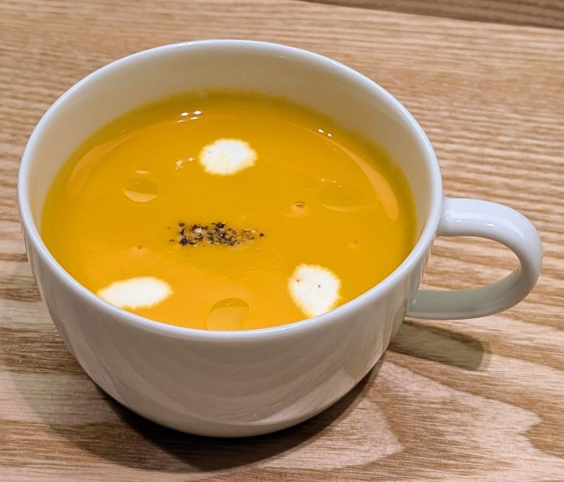 この日の「スープ」は濃厚で甘い「カボチャのスープ」であり、寒くなってきた季節に相応しい滋味あふれる「スープ」でした。