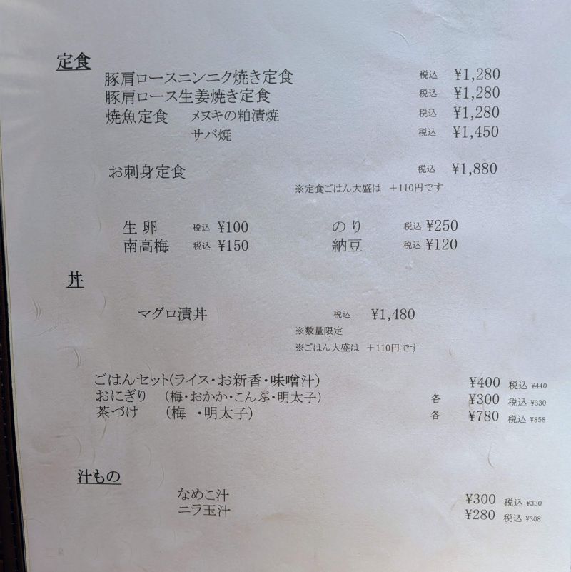 一方で定食がいくつかあり、