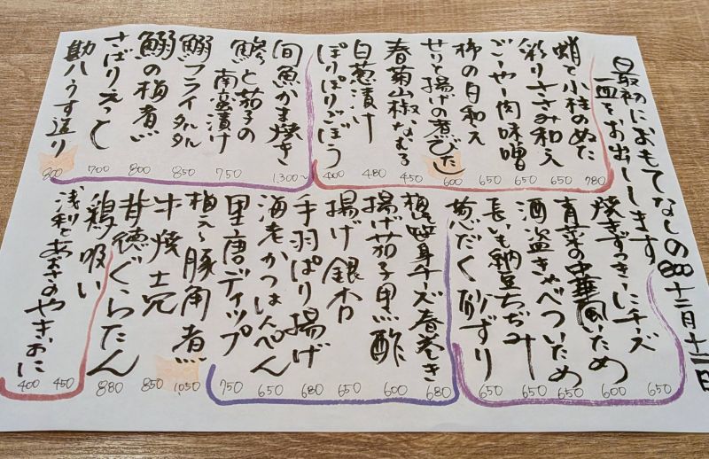 | 用途 | 新丸子で思う存分小料理が食べたいときに。 |
