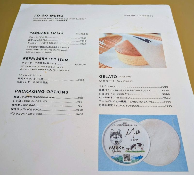 さてメニューを拝見すると「PANCAKE」「SANDWICH」などがありましたが、異なっていたのは「PANCAKE」が米粉ベースになっていたこと、つまりはグルテンフリーになっていました。