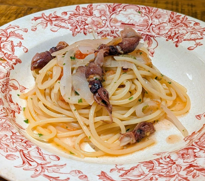 春の到来を感じるホタルイカ、蕗の薹の苦み、玉葱のフレッシュな食感、そしてパスタソースの味わい深さに舌鼓を打ちます。