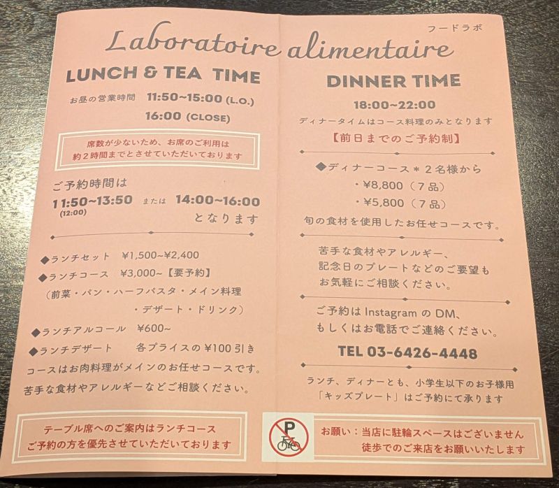 この日は「ランチコース」が気になったのですが、本来は事前予約が必要でした。